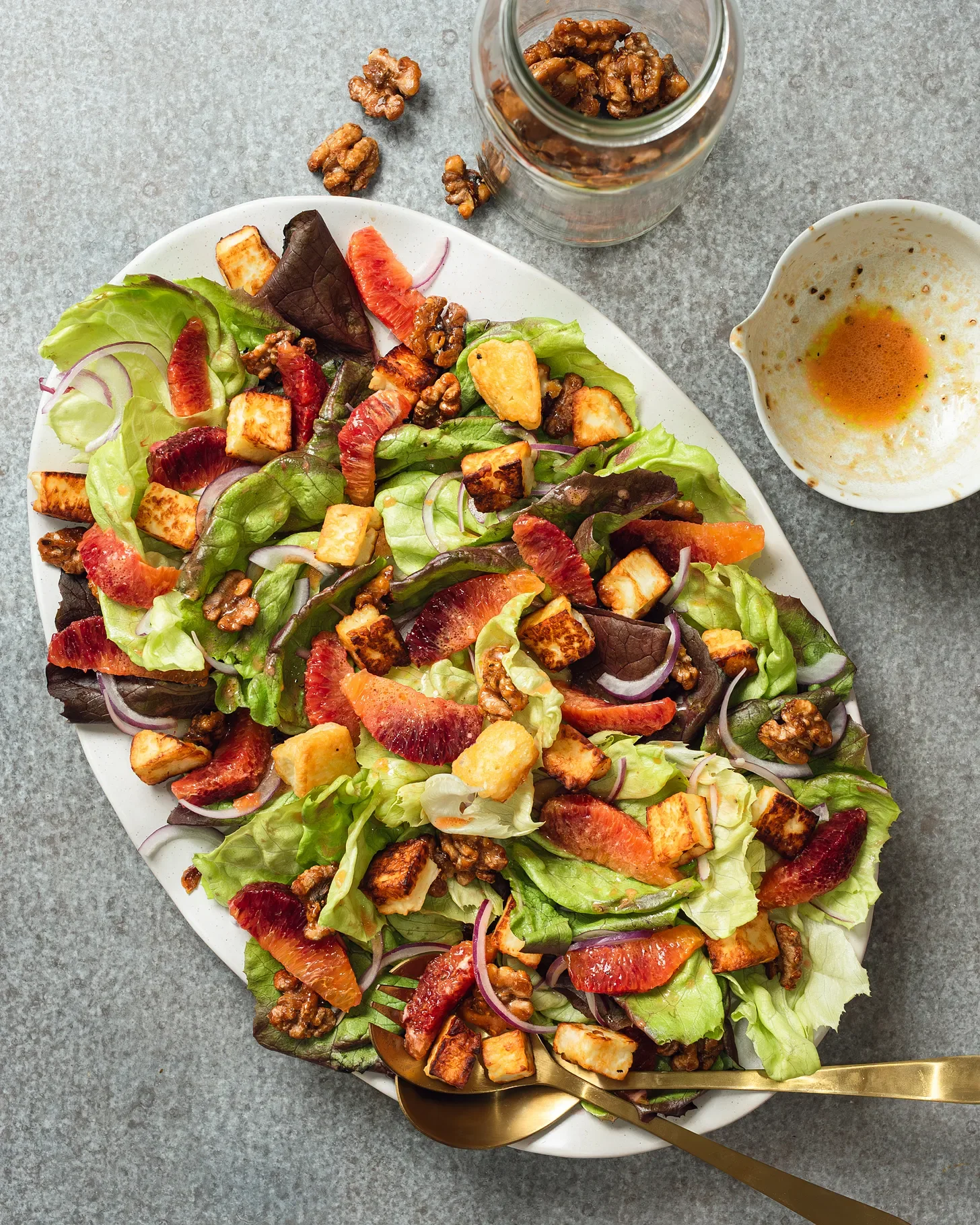 Roasted Pumpkin and Eggplant Salad with Miso Dressing